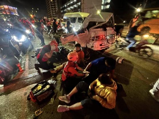 HINDI bababa sa 21 sasakyan ang inararo ng isang trak habang binabagtas ang Katipunan-Aurora flyover sa Quezon...